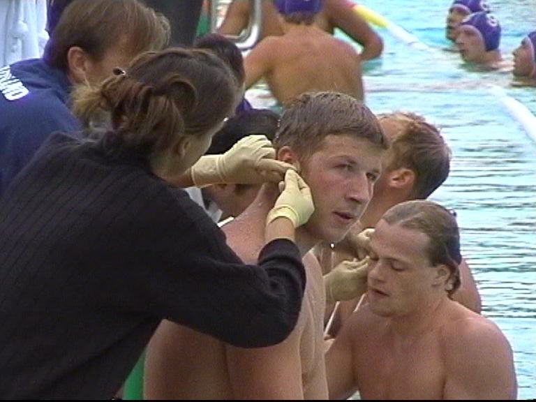 den DSV-Spielern zur Laktatmessung ab. Hier werden gerade