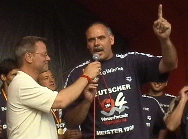 "Wir haben mit dem 20. Meister-Titel Wasserballgeschichte geschrieben und werden auch in Zukunft Geschichte schreiben", versprach Spandau-Trainer Peter Röhle den Fans (Foto: Witte) |