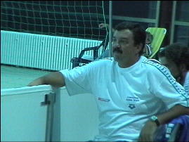 ![]() Italiens Trainer Ratko Rudic musste nach zwei gelben Karten die 10:7-Niederlage gegen Jugoslawien von der Tribüne aus verfolgen |