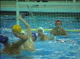 Spandau 04 Berlin Supercup-Gewinner 1999 hinten von links: Igor Uchal, Patrick Weissinger, Jens Pohlmann, Alexander Elke, Lasse Noerbaek, René Grotzky, Slawomir Andruskiewicz, Holger Jochem, Alexander Tchigir vorne: Andreas Schlotterbeck, Timo Purschke, Thomas Schertwitis, Deniz Pasaoglu, Foto: Witte |